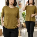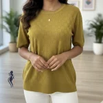 بافت کریستال یکی از مدلهای محبوب و پرفروش است که بهخاطر جنس لطیف و جلوه براق و زیبایش همیشه طرفدارهای خودش را دارد. این مدل بهخاطر قد متوسط و آستین کوتاه، انتخابی عالی برای استایلهای روزمره، دورهمی و زیر مانتو یا کتجین است. بافت کریستال بهخوبی روی بدن مینشیند و بدون ایجاد حس سنگینی، استایل شما را شیک و مرتب نشان میدهد.