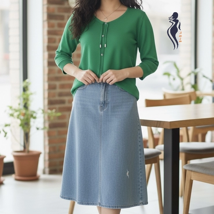 آبی مناسب استایل روزمره، همراه با شلوار جین