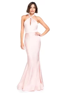 با دامن کامل که دارای یقه v عمیق است، نمی توانید اشتباه کنید. این دارای ظرافت و پیچیدگی است. این لباس شب مناسب برای یک مراسم خاص است.