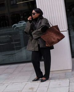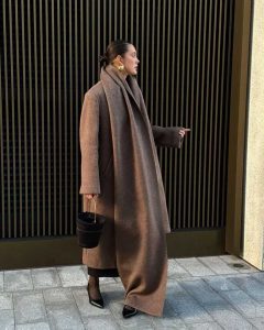 یک کت پشمی یا ترمه همیشه گران به نظر می رسد. با این حال، برای بهترشدن بیشتر ظاهر، یک استایل ماکسی لانگ لاین را انتخاب کنید که فقط مچ پا را نشان دهید. Frankie Shop و Toteme دو برندی هستند که با کتهای مینیمالیستی و دوخت با سایز بزرگ، این ظاهر را تقویت کردهاند.